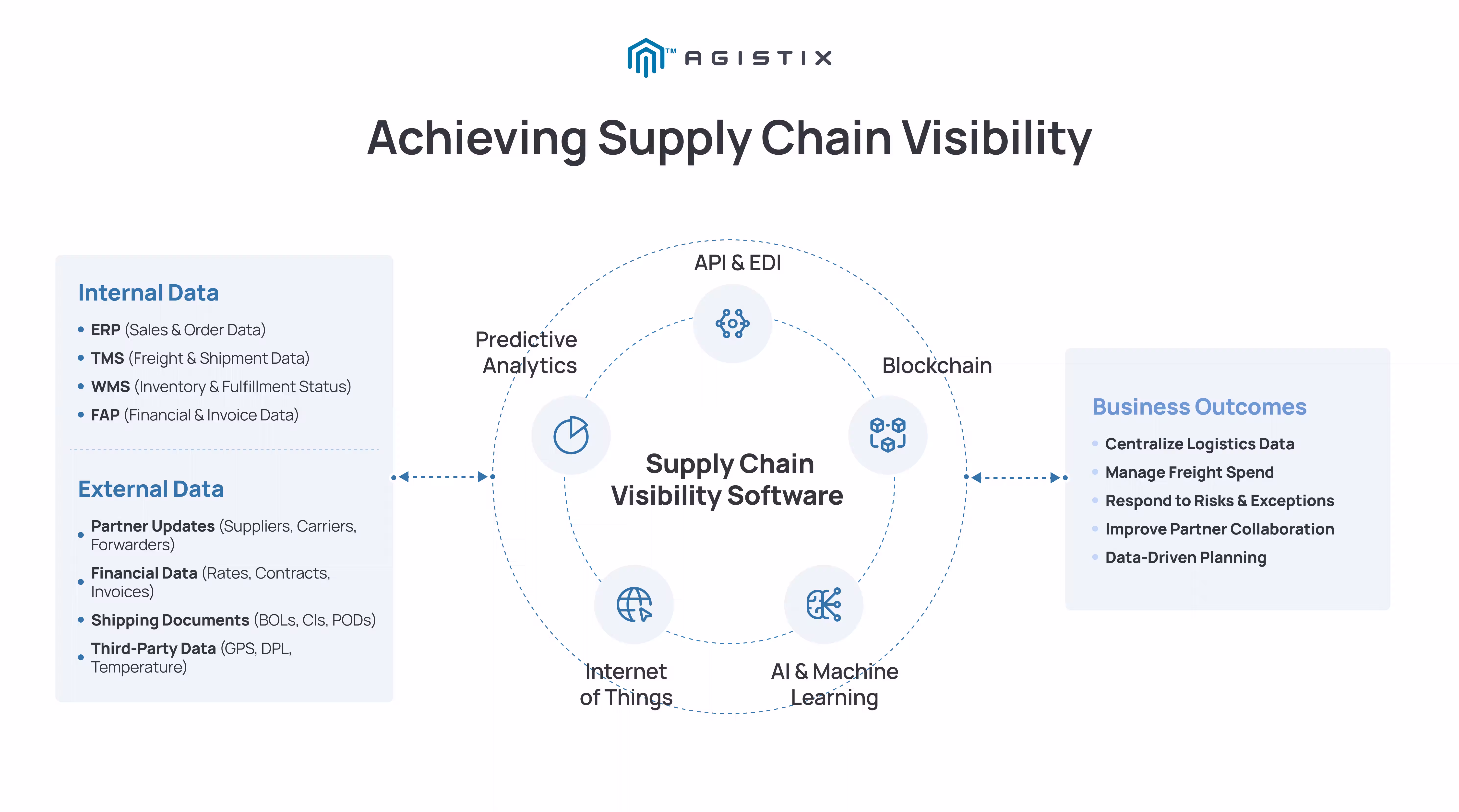 While visibility is essential, many businesses struggle to achieve it effectively. That’s because end-to-end supply chain visibility presents challenges that require the right data infrastructure, system integration, and partner alignment. Agistix helps organizations overcome these barriers by connecting order, shipment, and invoice data across systems and partners in a single, unified platform.
